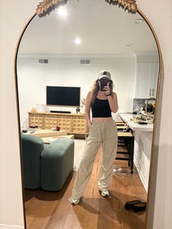 I wore these pants on a recent trip and I’m obsessed! They’re the perfect mix of comfy athleisure and put together to wear from the plane to dinner (which I love). The fabric is lightweight and durable, with the added bonus of UPF. I’ve gotten so many compliments already, I highly recommend!