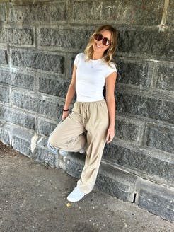 These pants are super comfortable, breathable, and stylish. I feel effortlessly put-together and cool every time I wear them. I also love that they're adjustable at the waist and legs! I tie the leg cinches and fold them under to get the perfect length.
